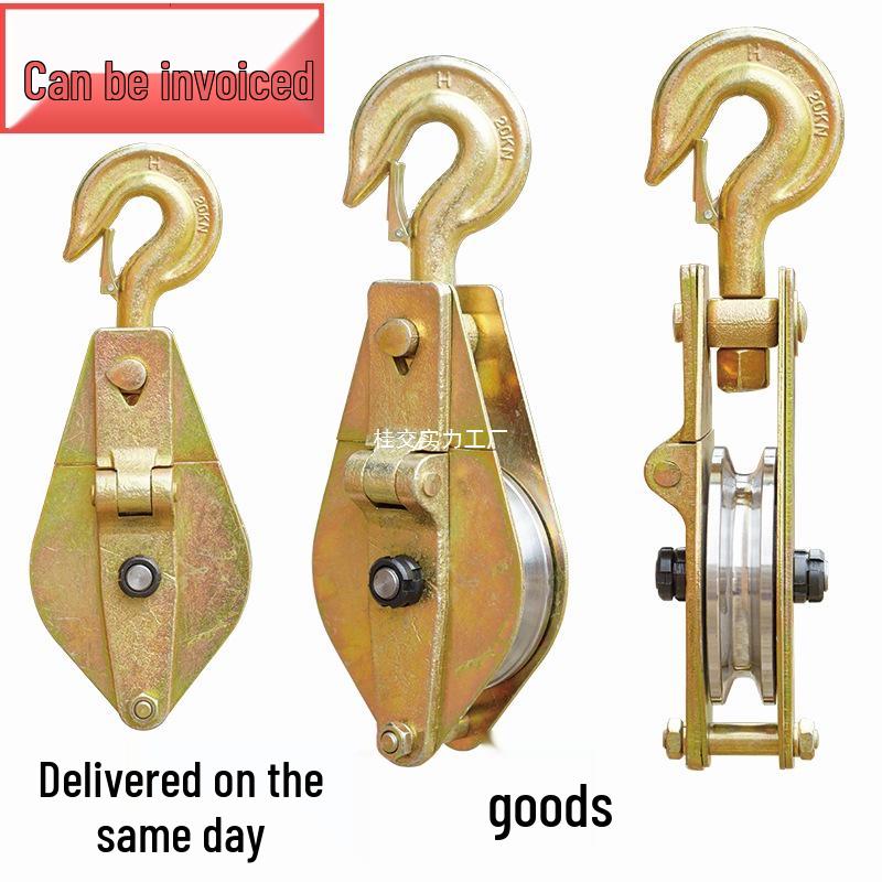 All-Steel Bearing Pulley Block with Hook - Available in 1 Ton, 2 Ton, 3 Ton, and 5 Ton Capacities.
