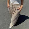 Calças Drapeadas de Cintura Alta Estilo Vintage Mulheres Senso de Design Amarração Lateral Fluidez Casual Retas Pernas Largas
