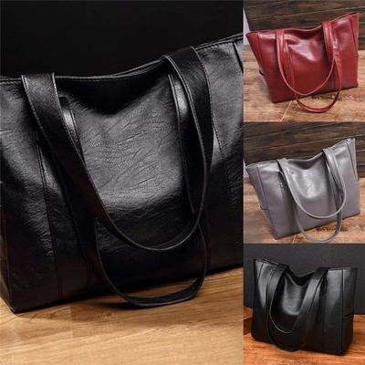 Fashion Retro Women Solid Colours Leather Tote Bag Large Capacity Waterproof