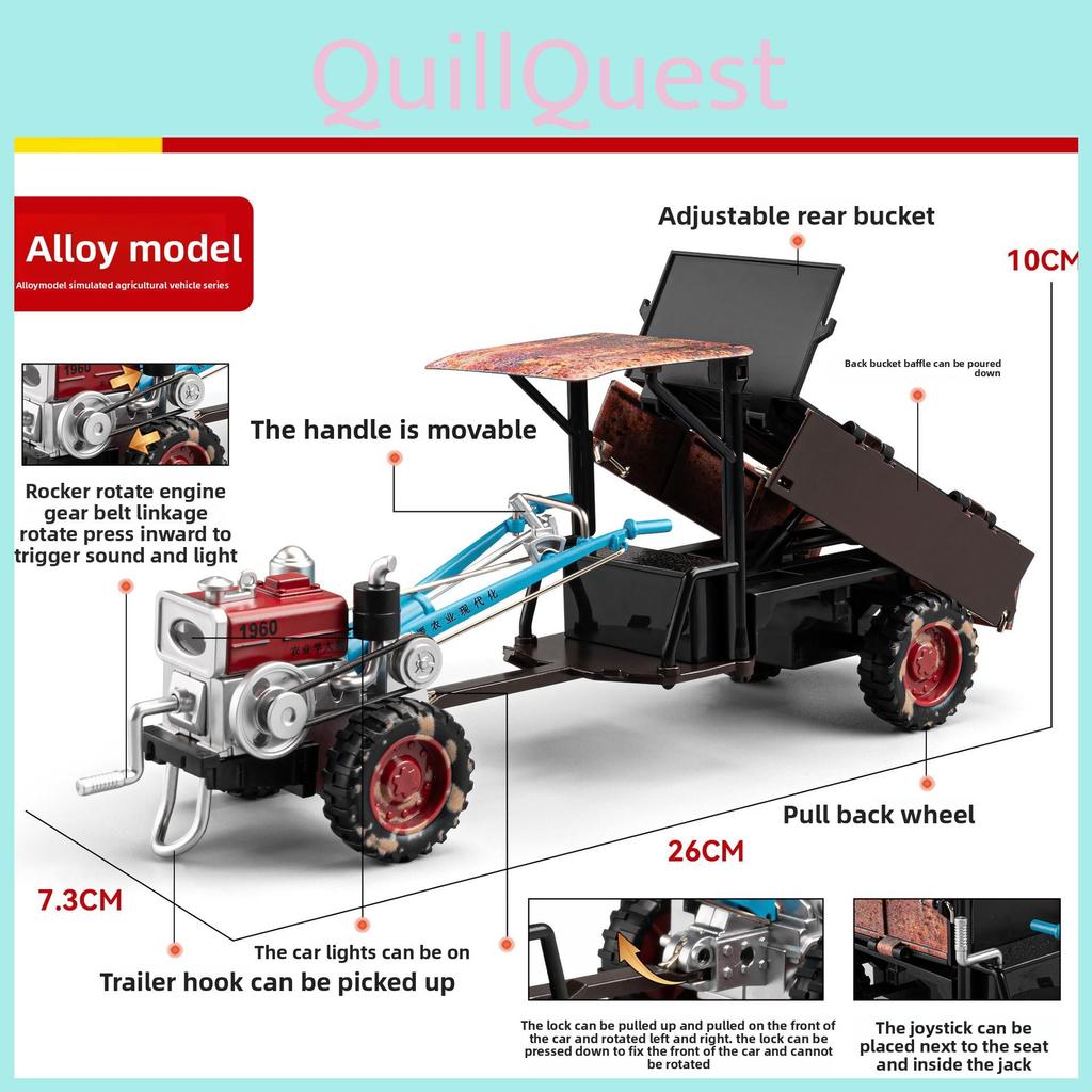 This die-cast vintage tractor model features durable alloy construction,Designed as a static collectible, it showcases detailed craftsmanship suitable for display or educational purposes. The model operates through inertia, providing realistic movement during play or collection. Ideal for childrens play or model enthusiasts, it resists wear and wipes clean easily for maintenance.