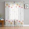 Cortinas Voile Transparentes de Folhas Verdes, Cortinas de Janela de Eucalipto Colibri com Filtragem de Luz e Bolso para Varão, Cortinas Voile