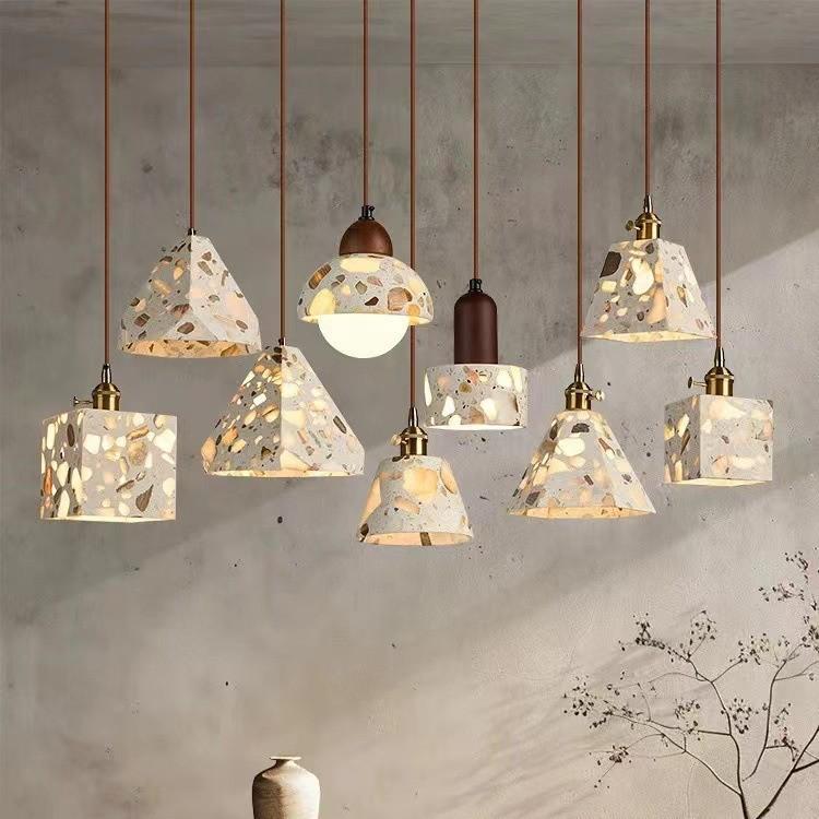Japanese Wabi-Sabi Yellow Travertine Pendant Light, Retro Mid-Century Style for Bedroom, Homestay, or Restaurant.