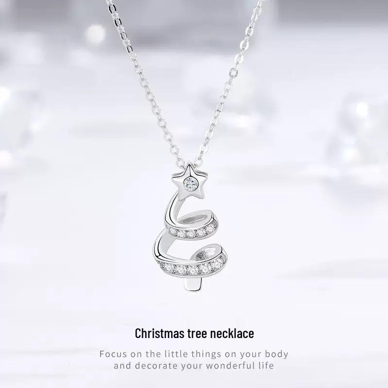 Lucky Star Sterling Silver Christmas Tree Women's Necklace - Light Luxury Niche Jewelry