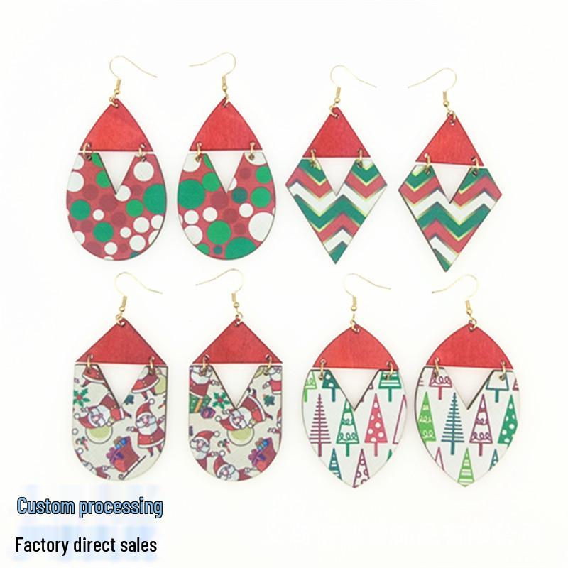 Red Hollow Spliced Creative Christmas Leather Dangle Earrings