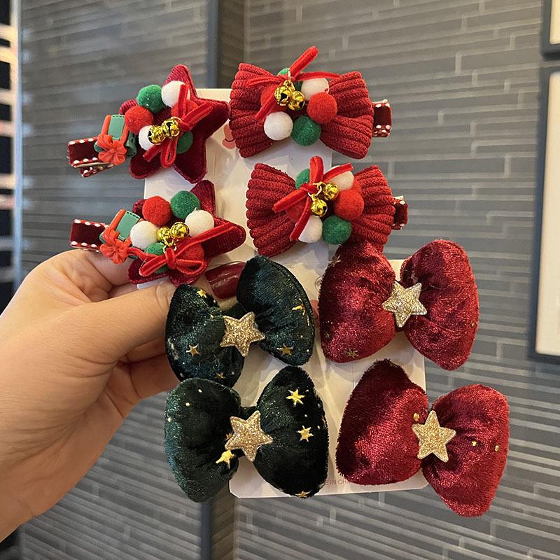 Christmas Bells & Bow Hair Clips Set for Girls - Festive Pompon Hairpins & Autumn/Winter Ties