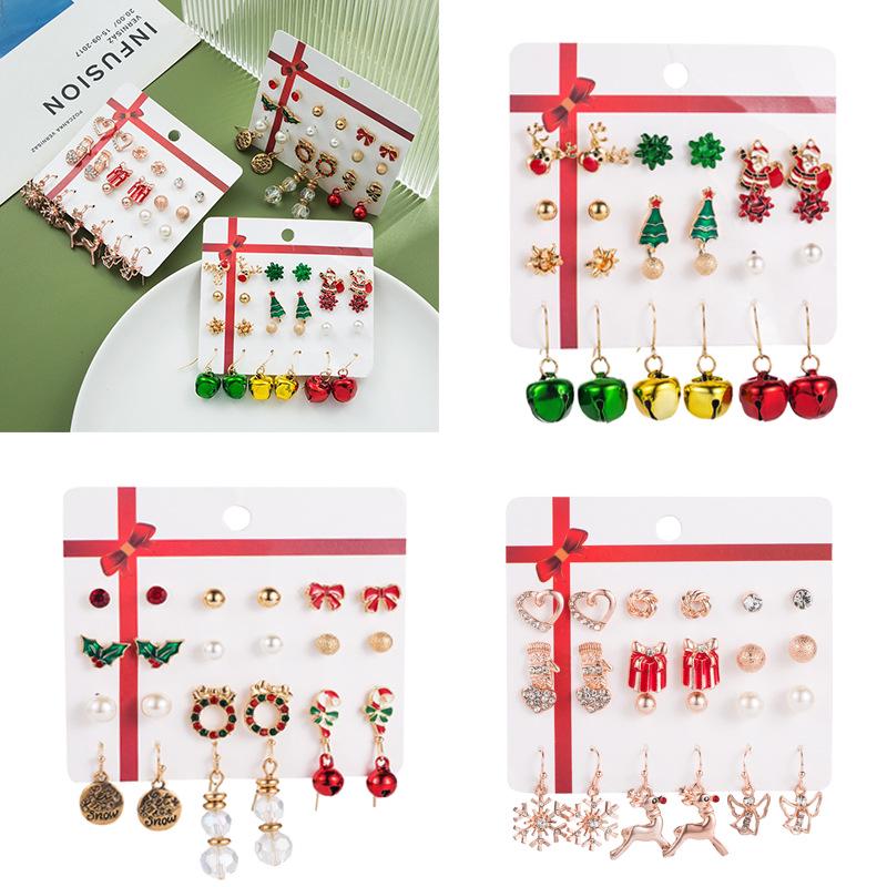 12-Piece Christmas Enamel Earrings Set - Santa, Bell & Tree Designs for Women