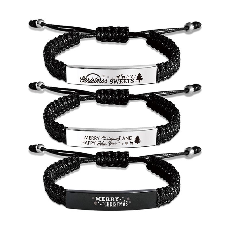 Christmas Handmade Woven Bracelet with Engraved Curved Stainless Steel Plate