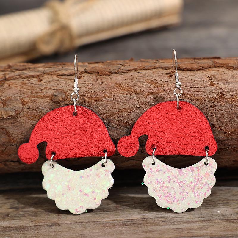 Vintage Santa Claus White Beard Christmas Hat Earrings