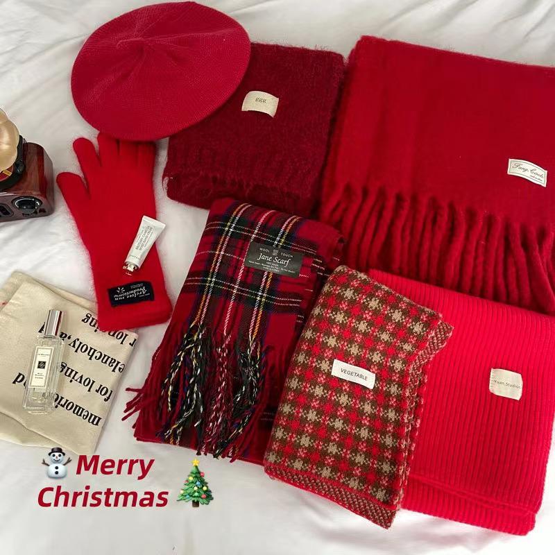 Red Winter Scarf: Cute Korean-Style Neck Warmer for Women & Couples - Perfect New Year & Christmas Gift