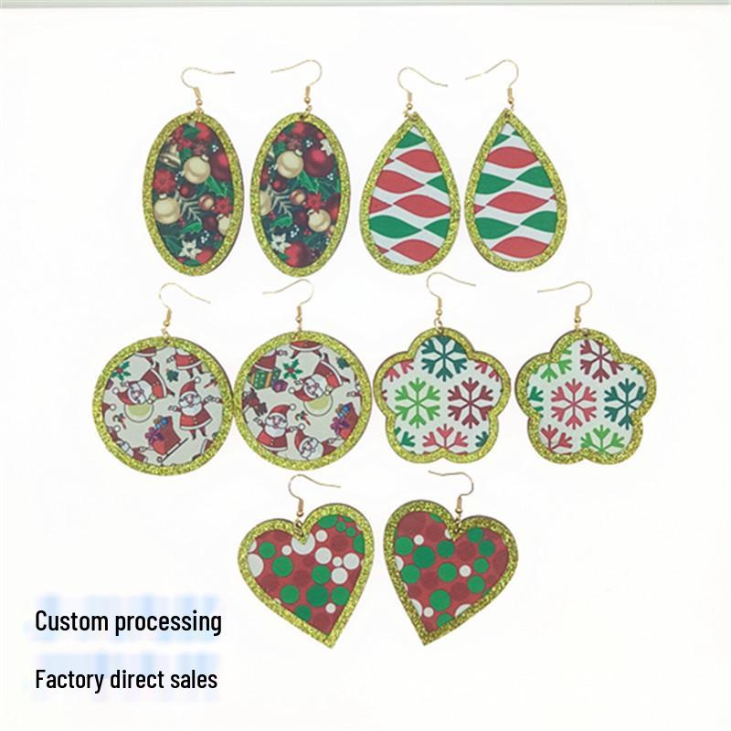 Creative Geometric Christmas and New Year Glue Leather Earrings