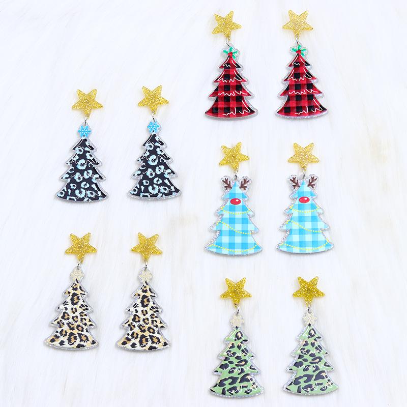 Versatile Women's Christmas Earrings: Five-Pointed Star, Leopard Print, Antlers, Snowflake Acrylic Dangles