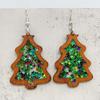 Christmas Tree Wooden Earrings with Acrylic Sequins - Festive Holiday Jewelry