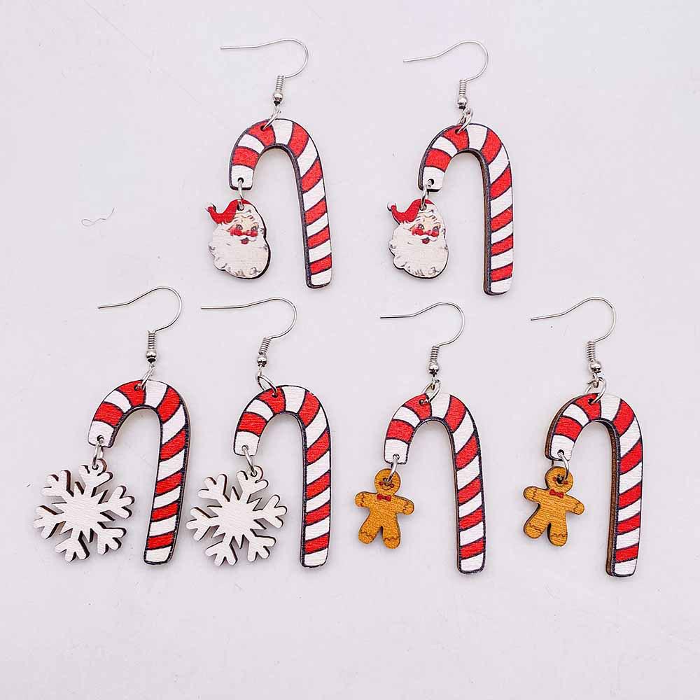Santa Claus & Snowflake Candy Cane Wood Earrings - Festive Spliced Jewelry for Christmas Eve Parties