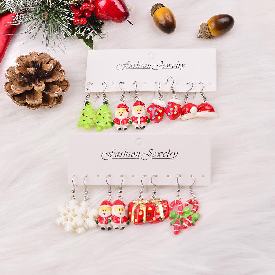 Conjunto de Brincos 3D de Boneco de Neve e Árvore da Série de Natal