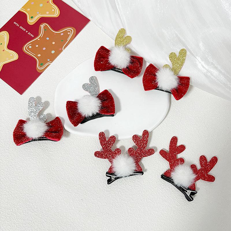 Christmas Glitter Bow & Antler Pom-Pom Baby Hair Clips