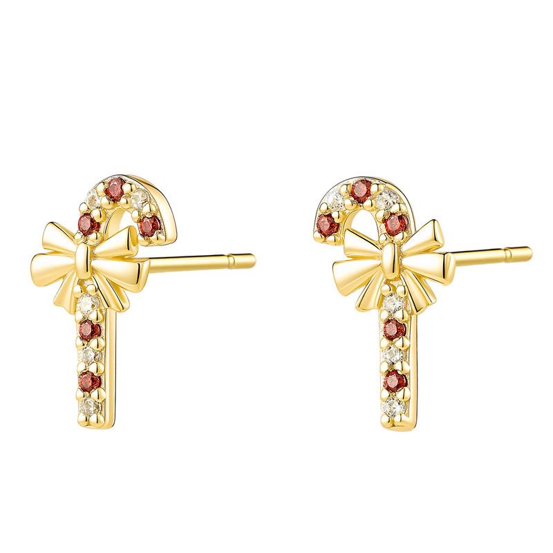 Arvaleff 925 Silver Christmas Candy Cane Earrings with 14K Gold Electroplating