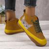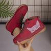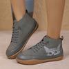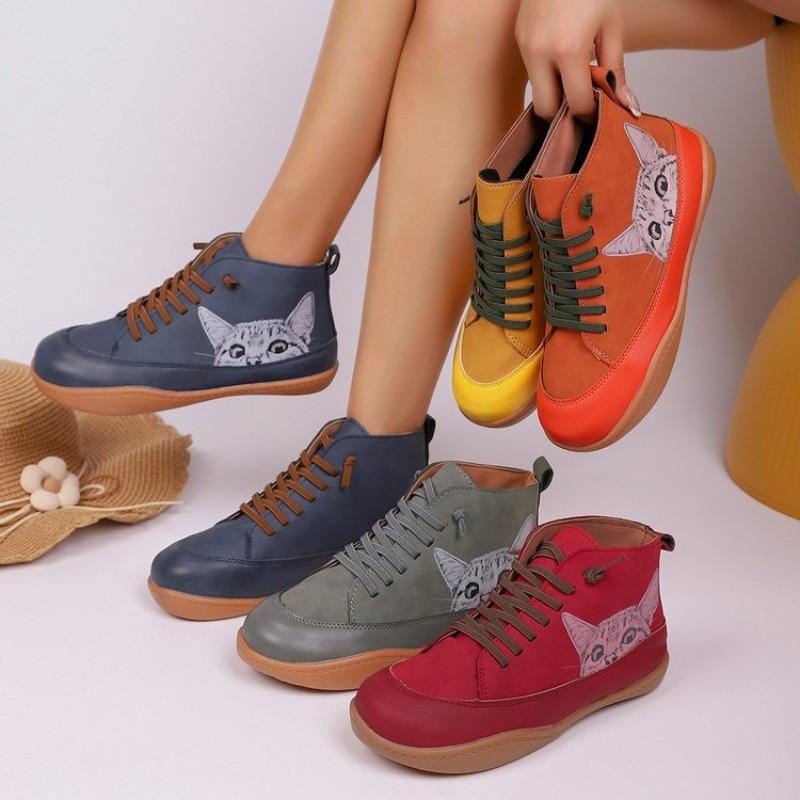 Botas Femininas Plus Size Estampa de Gato Cano Curto Salto Baixo Cadarço Moda Confortáveis Todas as Estações Primavera Outono