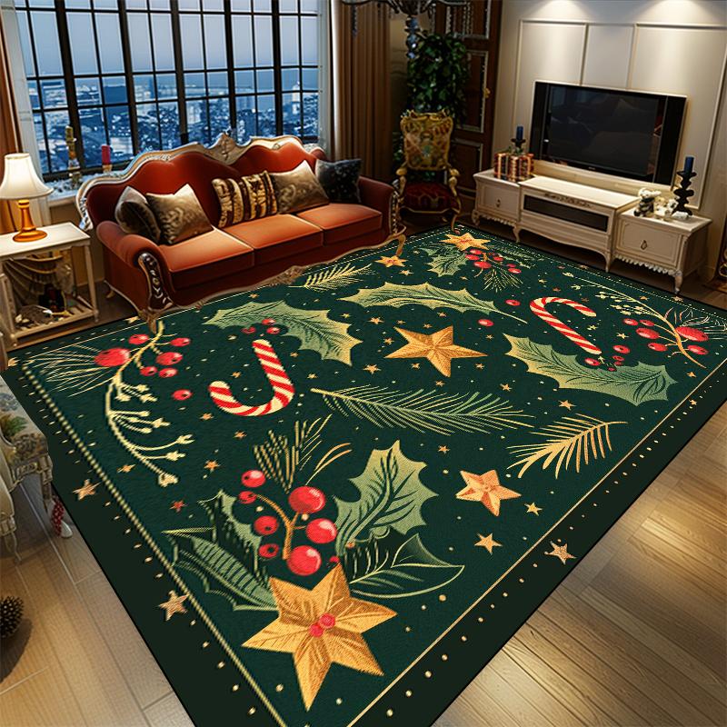 Christmas Green Carpet for Living Room New Year Candy Leaf Theme Rugs for Bedroom Soft Non-slip Parlor Floor Mat for Children