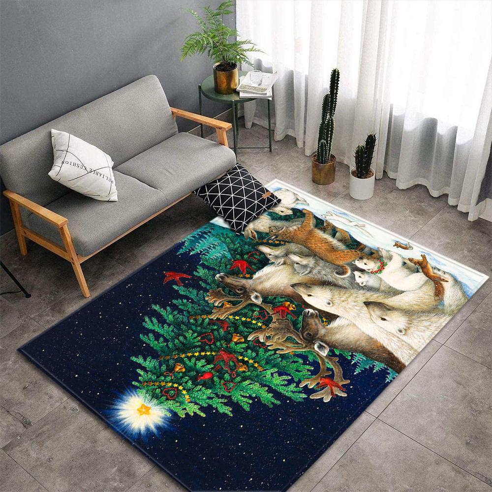 Christmas Tree Living Room Area Rug Xmas Gift Carpet Kids Play Bedroom Rug Santa Claus Print Home Decor Doormat Kitchen Floormat
