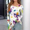 Women's Winter Slim Bottom T-shirt Fashion Casual Printing Round Neck Pullover Long Sleeve Top