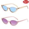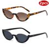 2pcs Small Oval Leopard Sunglasses Women Cat Eye Half Border Glasses Frame Fashion Driving Cycling Sunglasses Shades Unisex