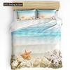 Azul Marinho Conchas de Coral Estrelas do Mar Capa de Edredom com Fronha Conjunto de Cama Personalizado 3 peças Capa de Colcha Cama de Casal Têxtil para Casa
