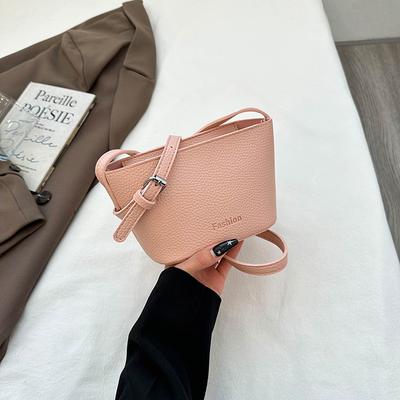 Nova bolsa de ombro tipo balde com padrão de lichia, simples e versátil, bolsa de mensageiro popular para ombro