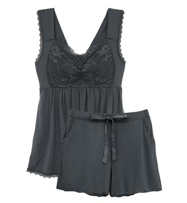 Two Hatch Night Bra Cami Flared Pants Includes Cupped Camisole and Charcoal 8812set & Set, Nursing-Friendly, Wireless, Loungewear, Shorts, 80L, Gray,