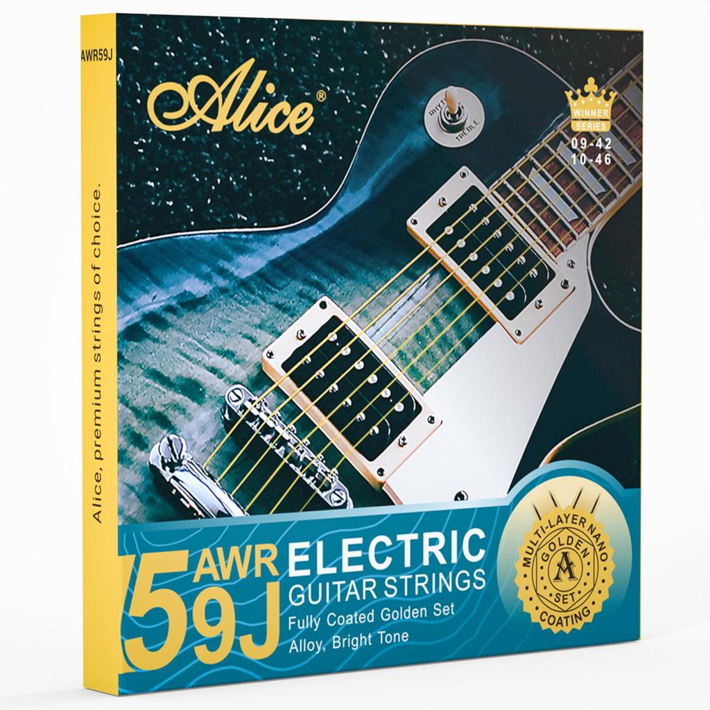 Alice Electric Guitar Concert Gold with Light AWR59J-L Strings, High-End Strings, Nickel-Plated Nano-Coating, (10-46)
