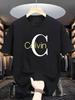 Men's Summer 100% Cotton Fashionable Casual Loose Large Letter Pattern Printed Round Neck Short Sleeve T-shirt Top#Color