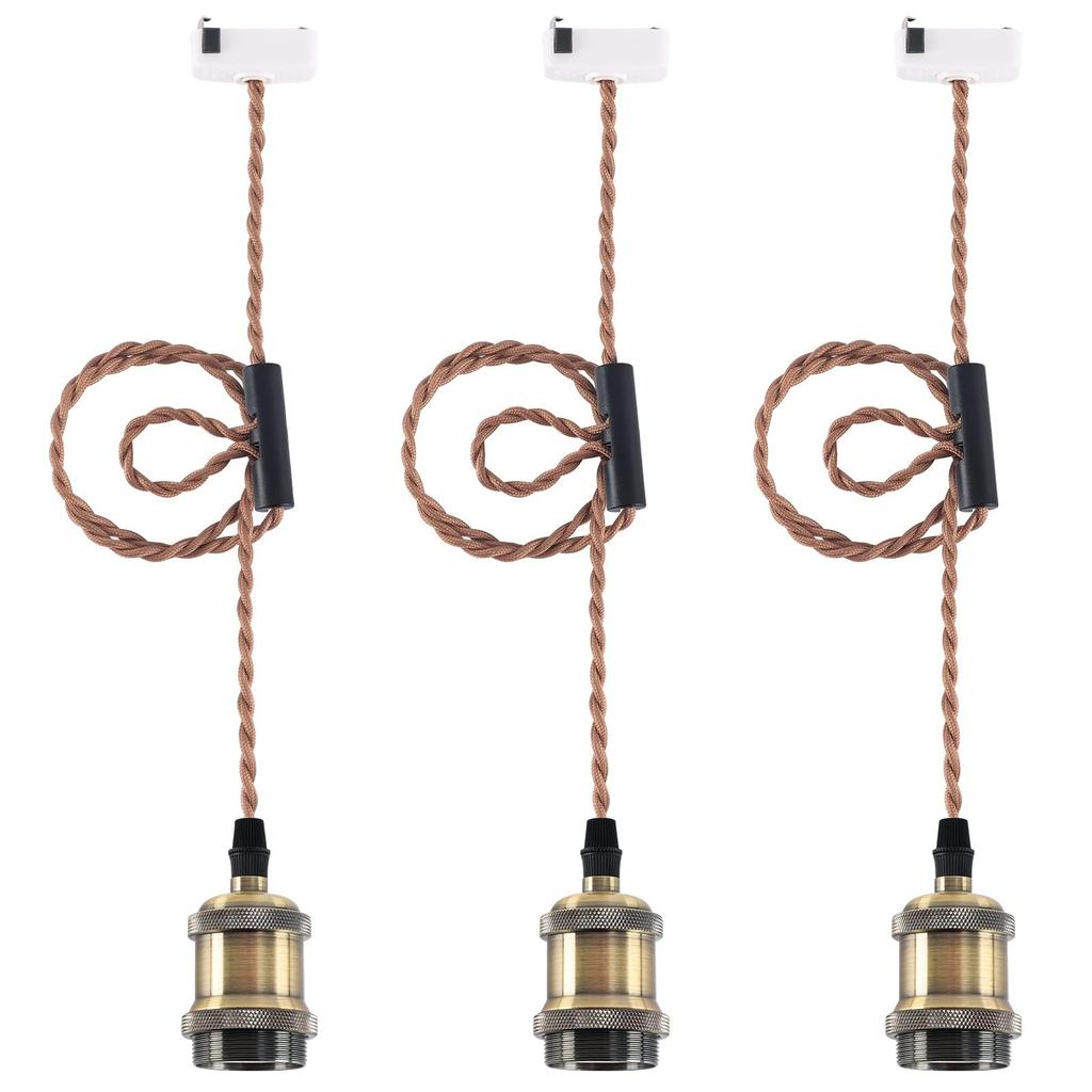 szbritelight Ceiling Light, 3-Bulb Socket Set, E26, Single-Light, Hanging Pendant Light, LED Compatible, Bare Bulb Compatible, Brass-Colored, 100cm