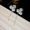 Brincos de Borla Pérola Agulha de Prata: Design Floral Retrô, Personalidade Doce, Brincos de Tachas de Luxo de Alta Qualidade para Mulheres