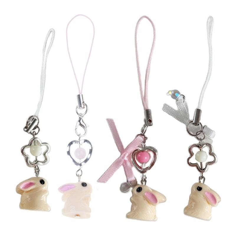Rabbit Ribbon Phone Charm Keychain Elegant Bowknot Flower Pendant Keyring Romantics Keyring Gift for Women Girl Teen