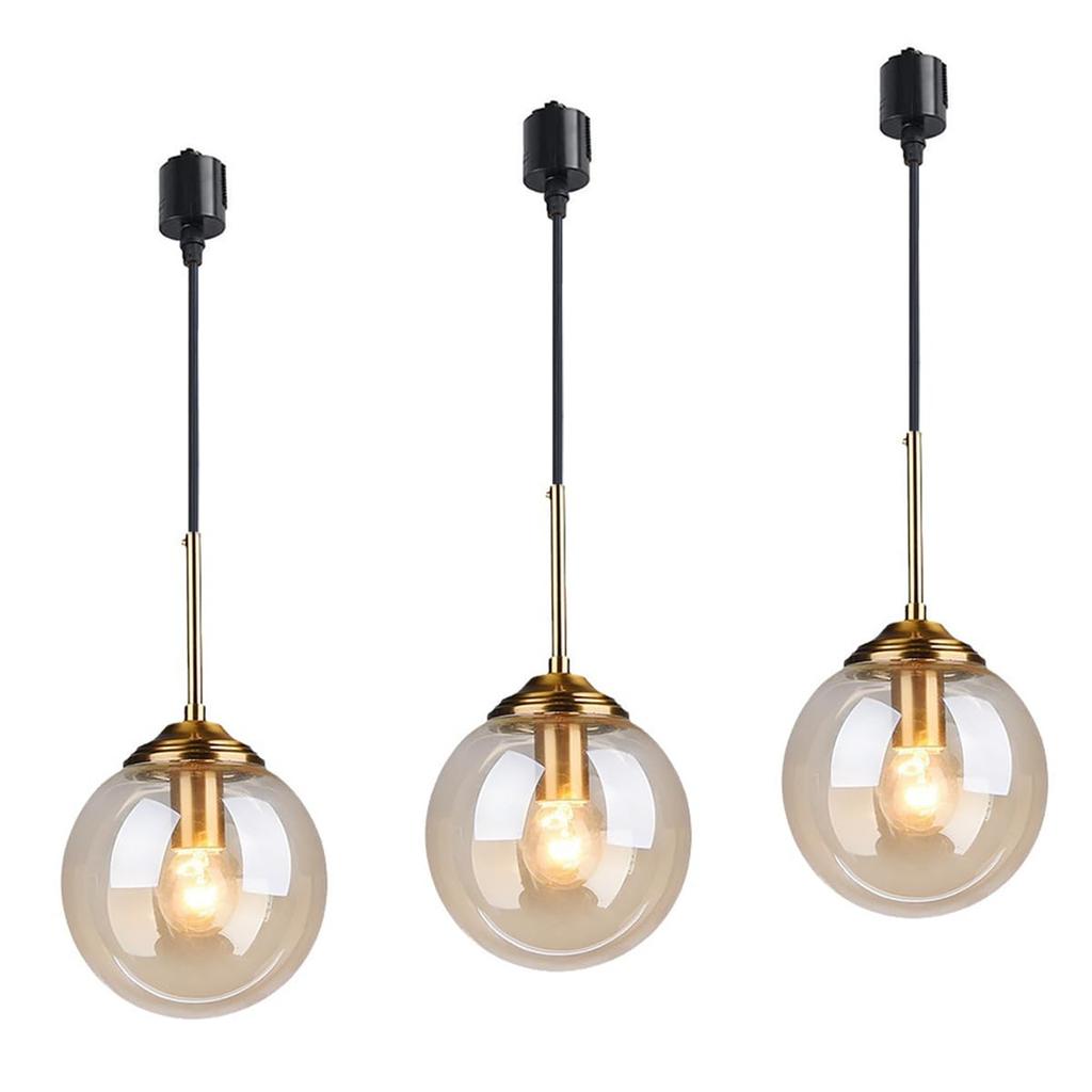 HFUGUD 3-Light Pendant Light, Stylish and Cute, Amber Glass Pendant Light, Round Lamp, Spherical Design, Simple, Duct Rail Compatible Pendant Light,