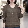 V-neck Sweater Stylish Bottoming New Long-sleeved Loose Pullover Versatile Solid Top for Women