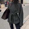 YYFS Moda feminina casual cor sólida estampa outono inverno manga comprida jaquetas e casacos com gola polo