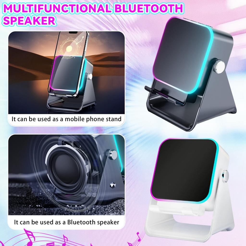 Alto-falante Bluetooth de Indução Sem Fio: Jogar enquanto carrega. Este alto-falante Bluetooth de indução sem fio carrega seu telefone enquanto você curte sua música.. Compacto e portátil: Ideal para festas, viagens ou férias.