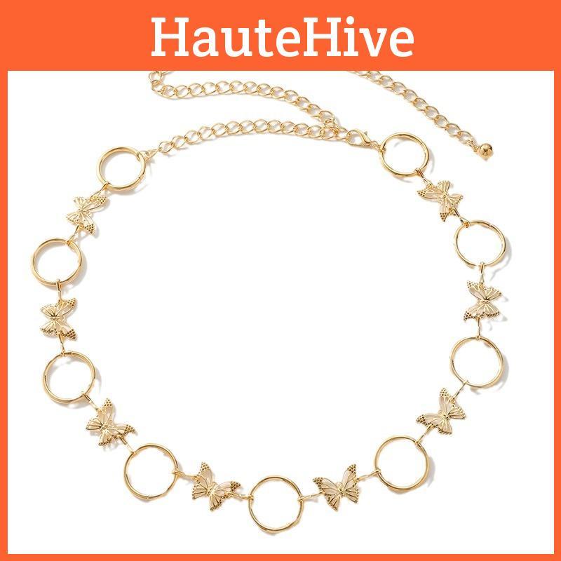 The Water Diamond Butterfly Waist Chain is a stylish accessory featuring a metal construction with water-diamond embellishments,Its adjustable lobster clasp ensures a secure fit. Made for women, it adds a chic touch to outfits across seasons. Wipe clean with a dry cloth for maintenance.