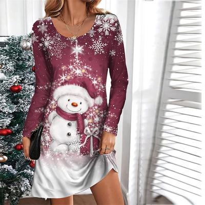 Vestido casual feminino outono natal boneco de neve vestido estampado feminino o-pescoço vestido de manga curta plus size