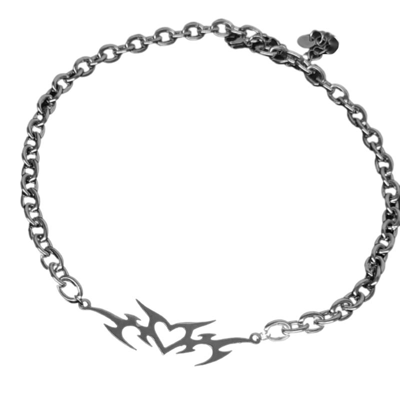 Trendy Fashion Punk Necklace Hollow Thorn Love Pendant Choker Cool Unisex Neck Jewelry Alloy Material for Party Daily