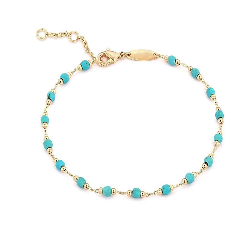 Classical Temperament Style Natural Turquoise Bead Adjustable Bracelet Niche Design Party Fashion Accessory Coordination