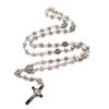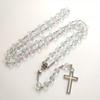 Gray Crystal Rosary Necklaces Catholic Crucifix Cross Pendant Long Necklaces Religious Jewelry for Women Men Gift