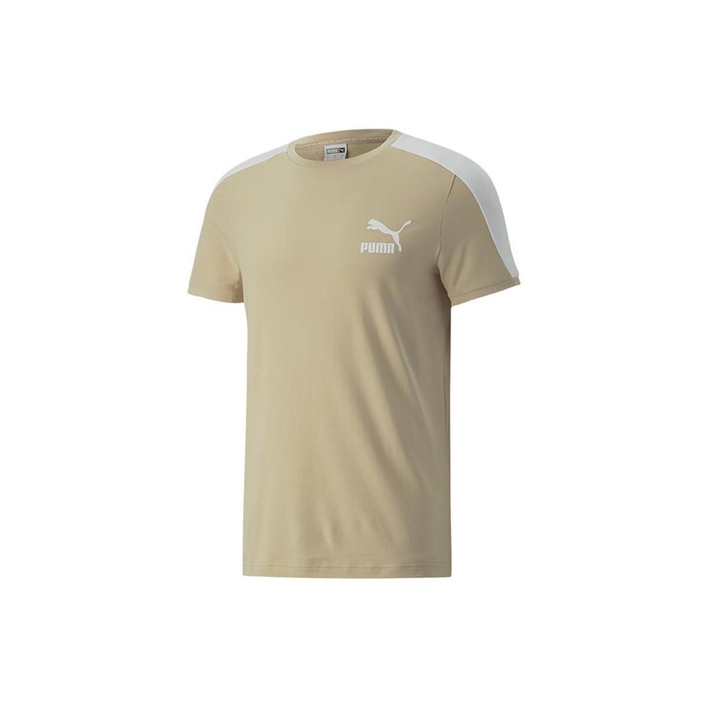 Puma Sports Lifestyle Series Logo Patch Round Neck Short Sleeve T-Shirt Men Tops Light-Camel 532291-67