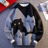 Cartoon Cat's New Knitted Sweater Men's Autumn Winter Warm Knitted Sweater Men's Pullover Home Clothes