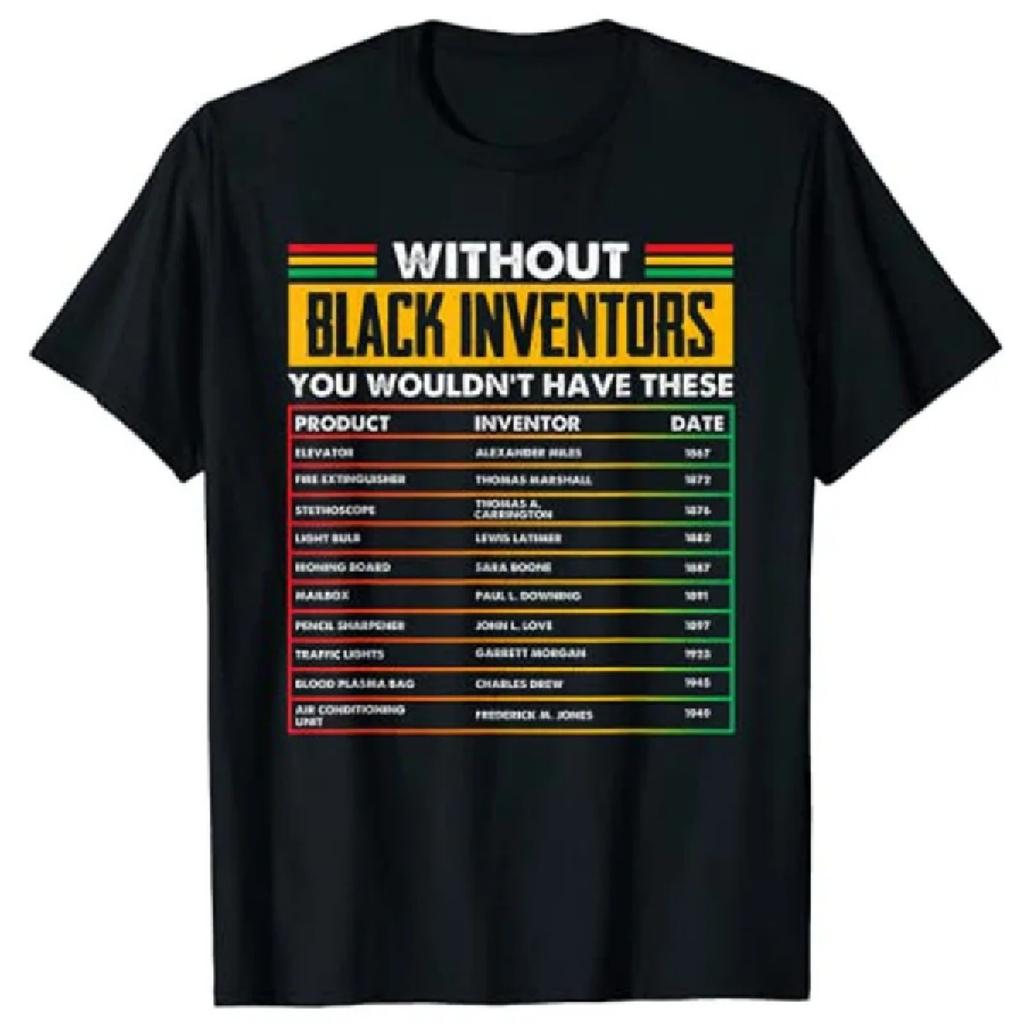History of Forgotten Black Inventors Black History Month T-Shirt Graphic Tee Tops Black-Proud Women Men Clothing Novelty Gifts