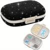 Bling Pill Organizer With 8 Compartments Travel Portable Pill Case Double Sided Rhinestone Pill Box For Vitamin Fashion Gifts