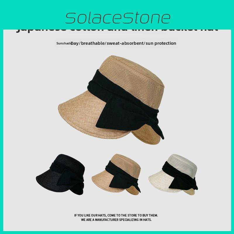 Unisex Cotton Linen Fisherman Hat With Bow Decoration For Beach And Outdoor Activities