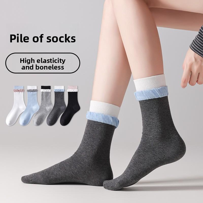 Boneless Women's Cotton Socks, Lace Pile Socks, Comfortable and Versatile, Sweat-absorbing White Socks, Mid-calf Socks