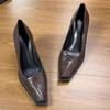 Moda Moda Sapatos de Escritório de Couro de Crocodilo 2024 Salto Alto Fino Simples de Verniz Bico Fino Salto Alto Feminino