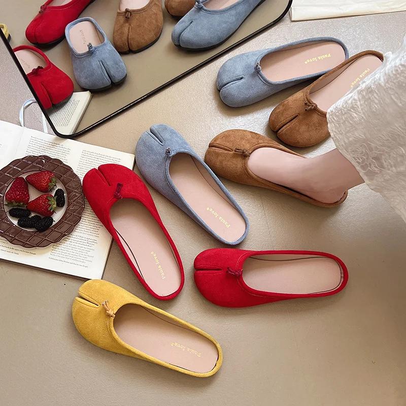 Moda Francês Amarelo Bico Redondo Ballet Sapatos Solteiros Femininos para Uso Externo Primavera e Outono Sapatos de Sola Macia